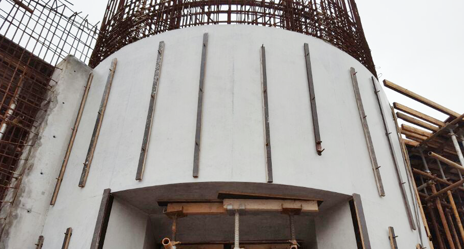 全鋼異型空間拱殼模板施工現(xiàn)場(chǎng)